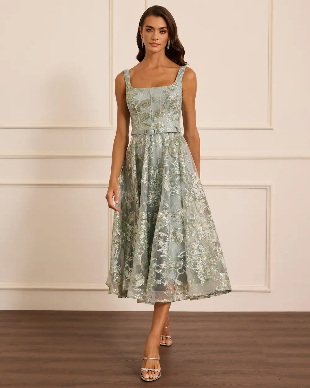 - kare yaka desenli kemerli abiye