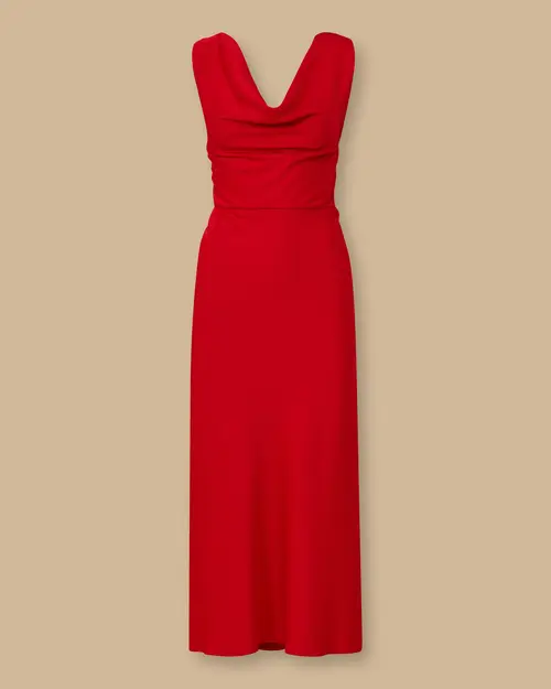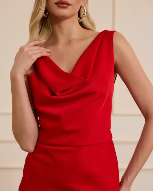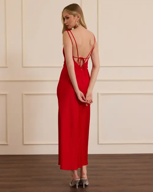 Back Decollete Degaje Collar Satin Dress is suitable for special occasions with its stylish design and elegant stance.