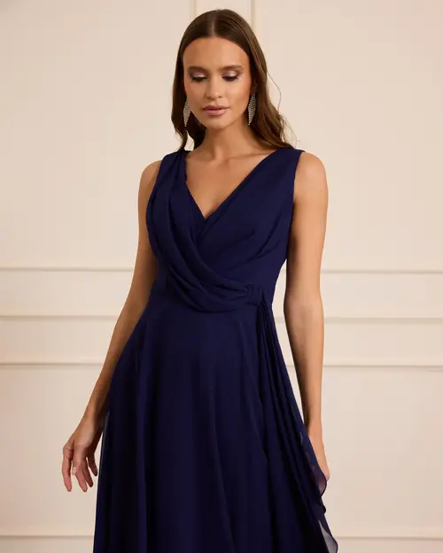 Chiffon Sleeveless Midi Evening Dress