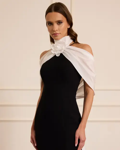 crepe evening dress with removable accessories