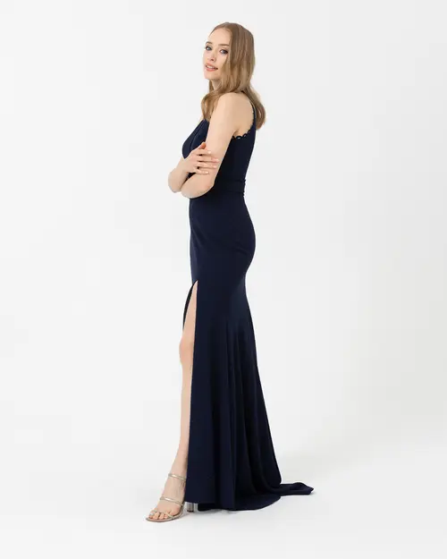 fish form crepe evening dress