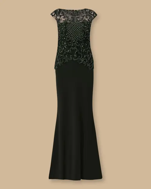 Plus Size Embroidered Fish Form Evening Dress, offers a stylish look with its embroidered top detail and fish cut.