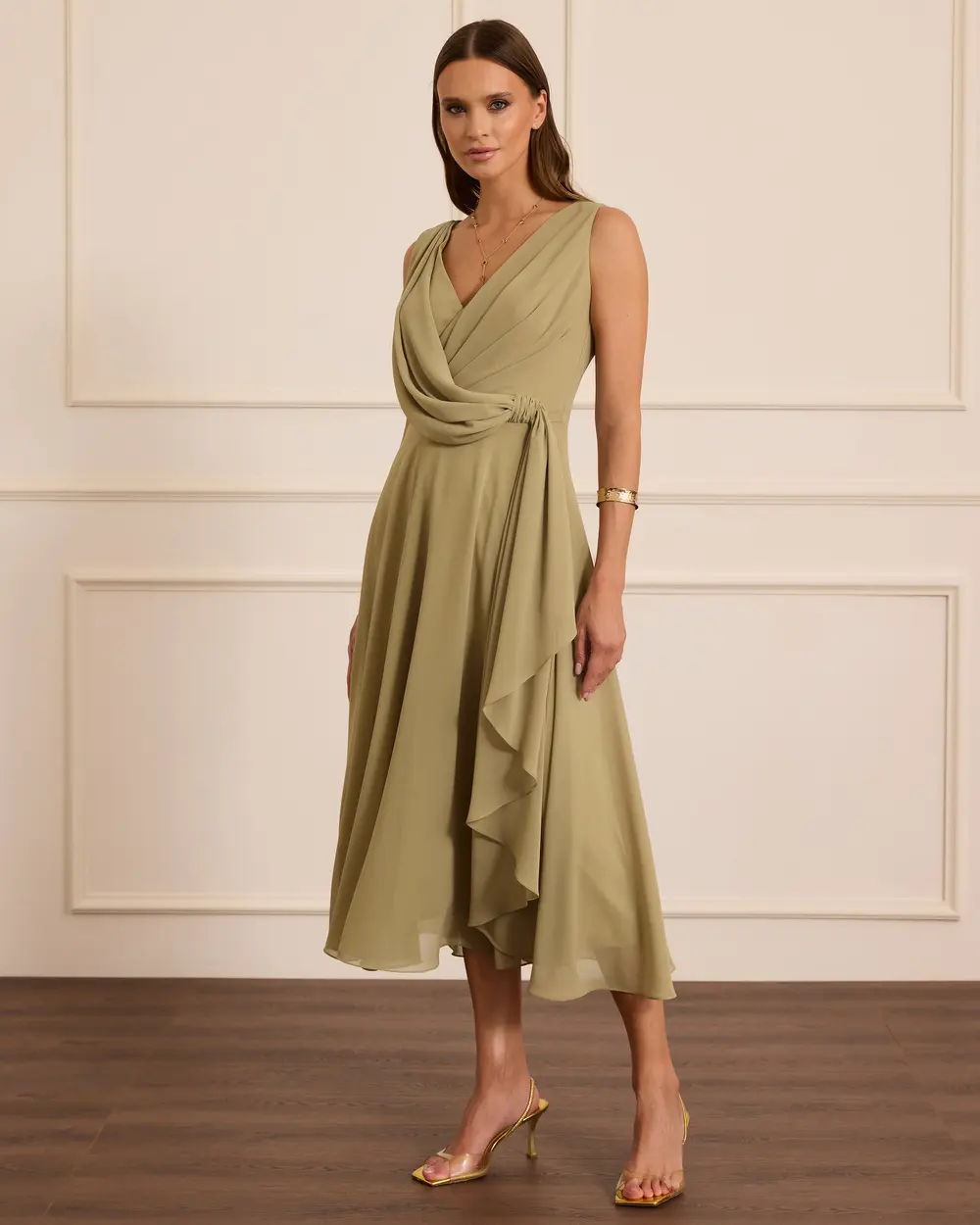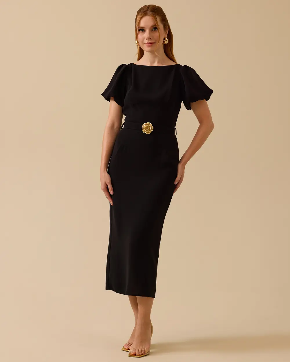 - çiçek desenli tafta kumaş midi boy şık elbise