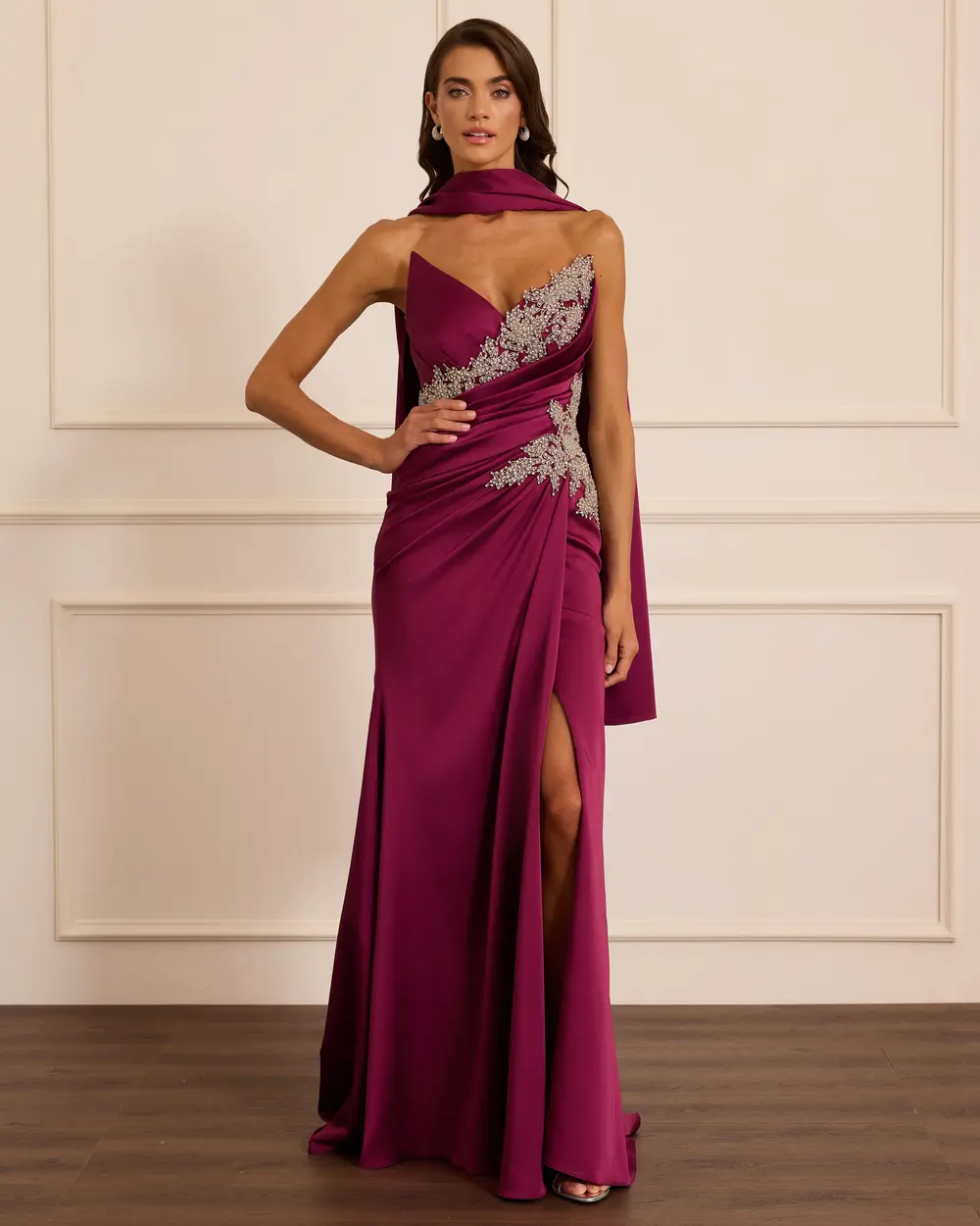 - çıkarılabiir kollu kalp yaka mini boy abiye