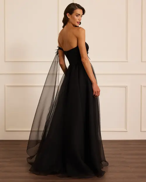 aksesuar detaylı organze kloş abiye