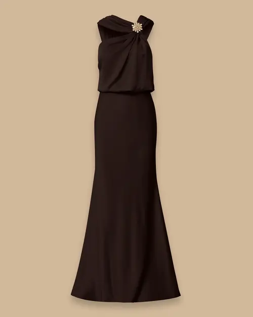 Aksesuar detaylı tek kol abiye, modern kesimi ve şık dokunuşlarıyla göz alıcı bir görünüm sunar.