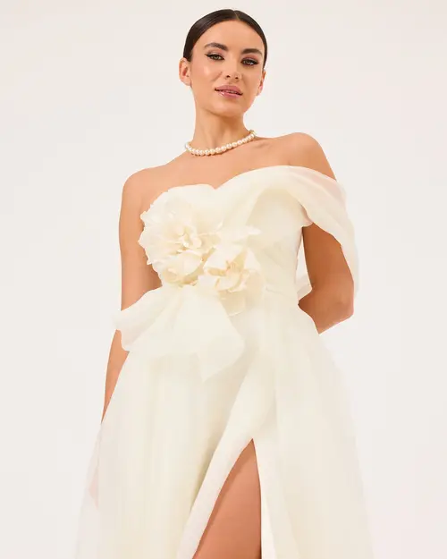 Çiçek Aksesuarlı Yırtmaçlı Abiye
