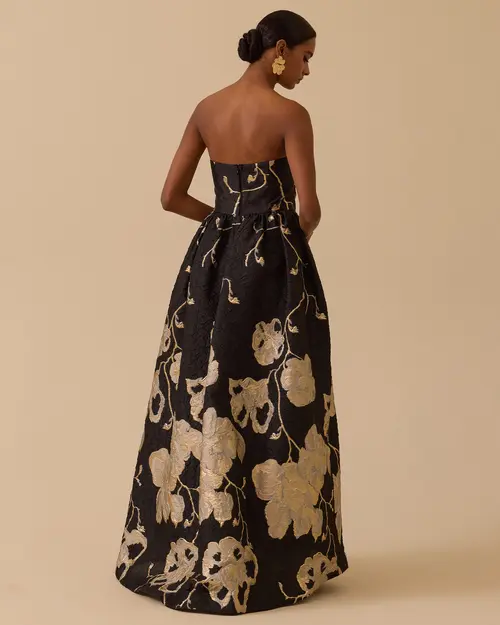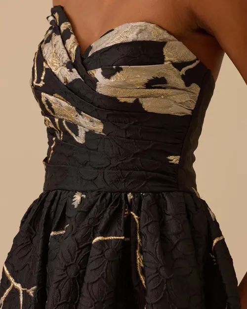 Asimetrik Yaka Cepli Desenli Abiye