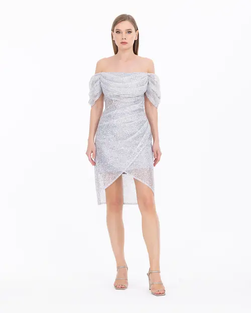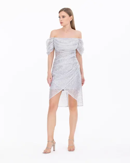 Straples yaka abiye, dikkat çeken bir silüete imza atıyor. Balon kollu elbiseyi topuklu sandaletler ile kombinleyebilir, choker kolyeler ile stilinizi yükseltebilirsiniz.