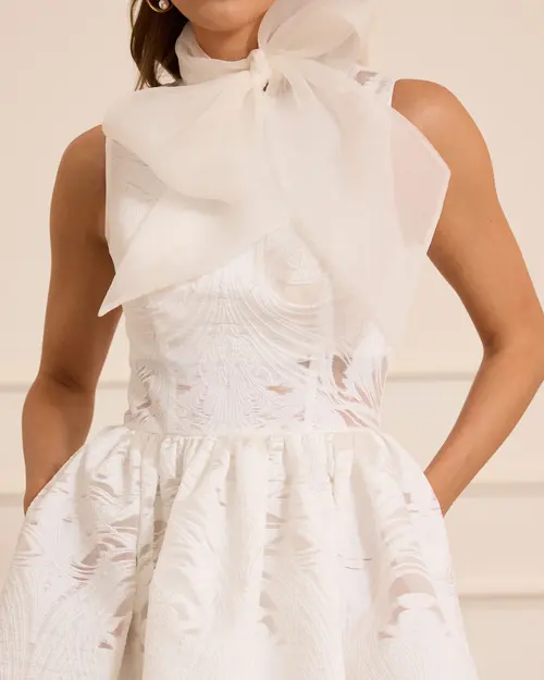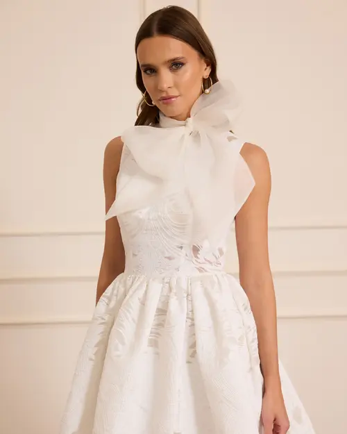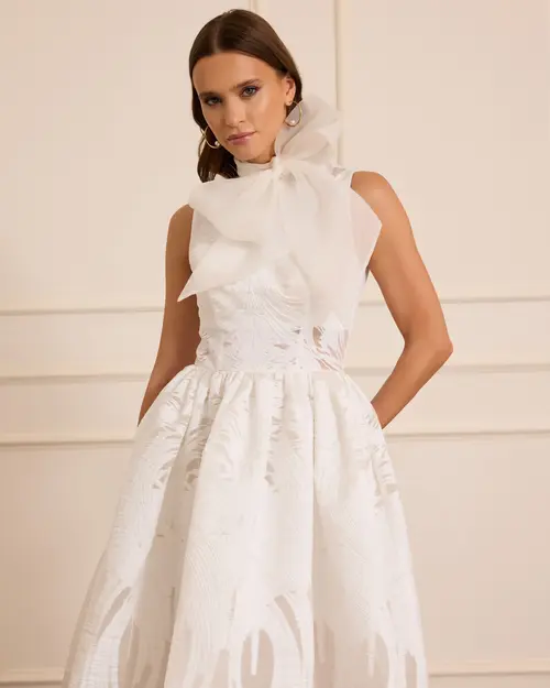 çıkarılabilir fular detaylı midi kloş abiye