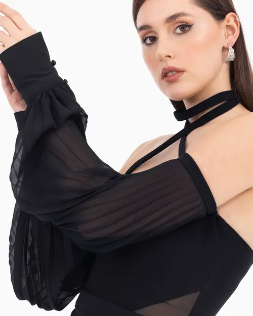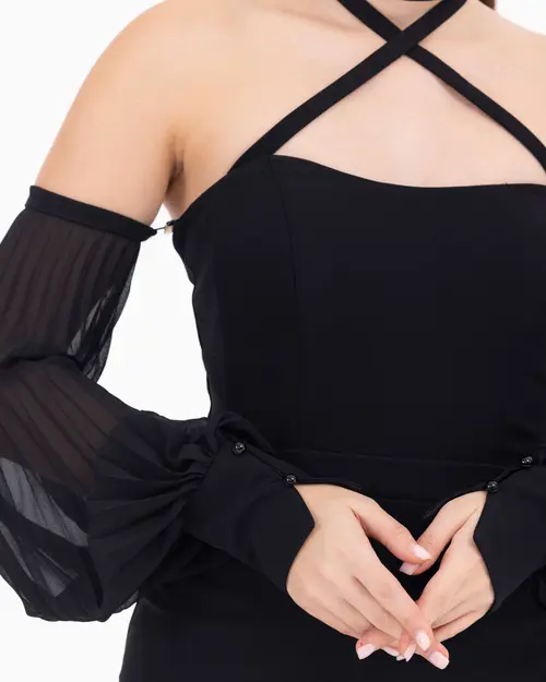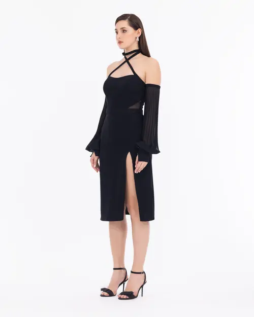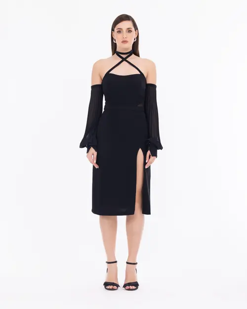 Çıkarılabilir kol detayıyla iki farklı görünüm sunan abiye elbise, farklı tasarım sevenler için ideal bir seçenek oluşturuyor. Nikah davetlerinden, mezuniyet kutlamalarına bir çok okazyonda tercih edebilirsiniz.