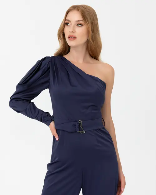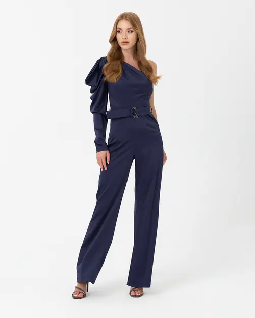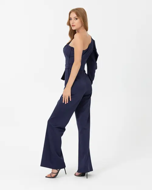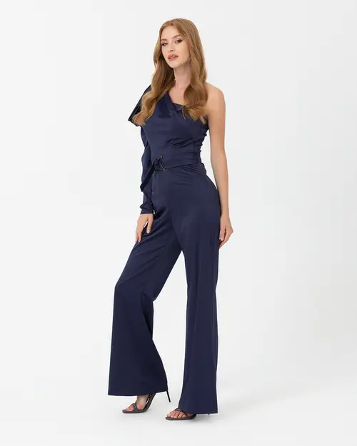 Tek omuzlu saten abiye tulum, şıklığı ve cesareti mükemmel bir şekilde birleştirir. Zarif tasarımı, modern kesimi ve şık kumaşıyla her özel etkinlikte unutulmaz bir izlenim bırakır.