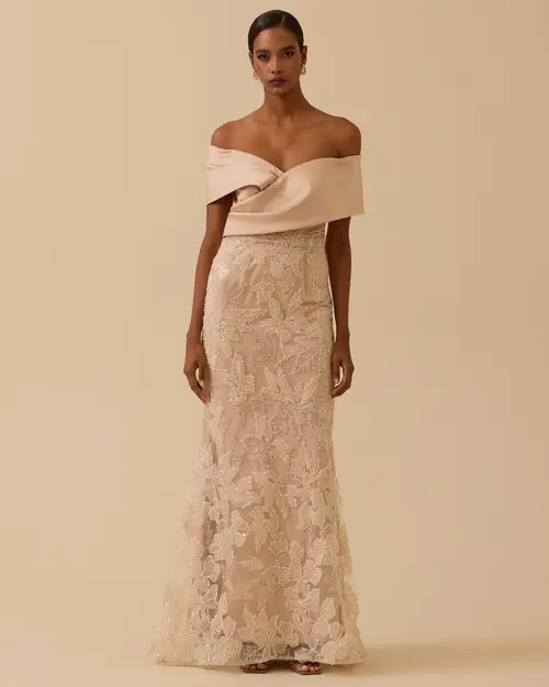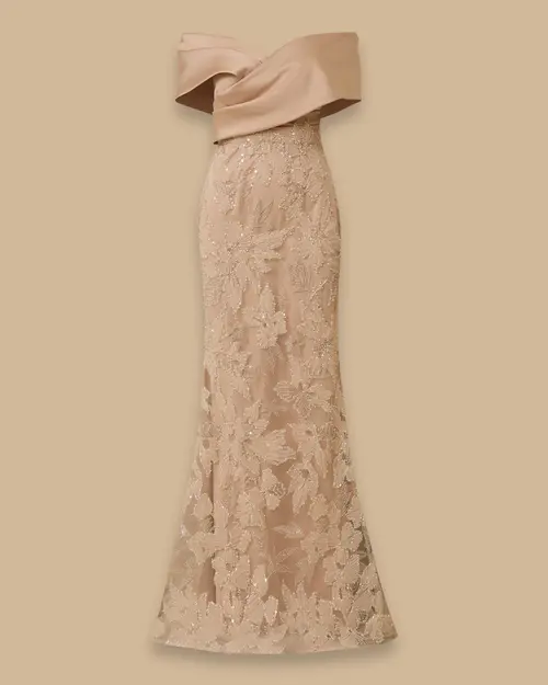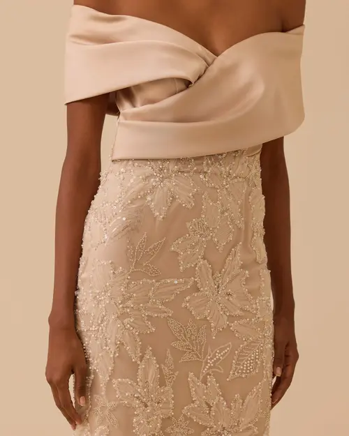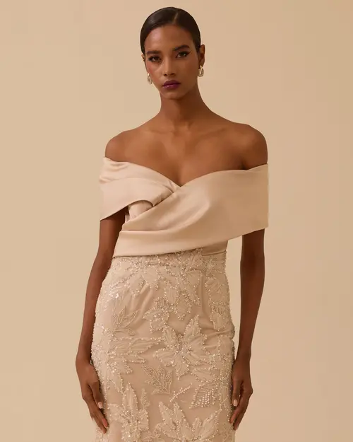 Düşük Omuzlu Dar Form İşlemeli Abiye