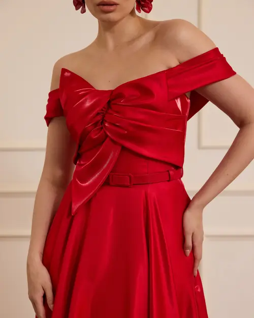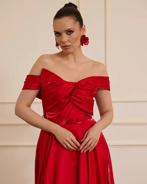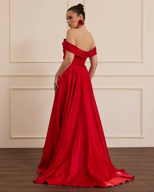 Kemerli Düşük Kol Cepli Jakar Abiye