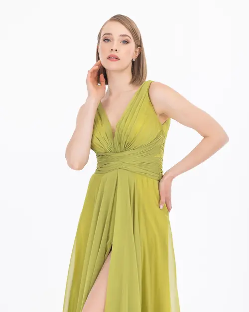 Yırtmaçlı Maxi Boy V Yaka Abiye