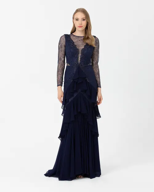 A Kesim Sıfır Yaka Şifon Abiye